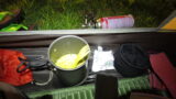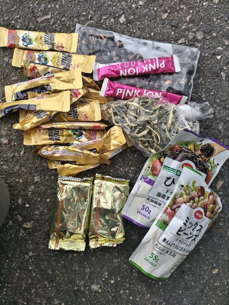 9/5(火) お遍路5日目 →伊賀 お遍路 X Facebook はてブ Pocket LINE コピー 2023.09.062023.12.25 4日目 < 目次 > 6日目 45.5km/254.3km 曇/雨→晴 朝はたまに短い雨もありつつ、am8時くらいからは炎天下の猛暑。この時期の暑さを甘くみてました。ふらふらになりつつも、最後は三重の友人3名も会いに来てくれて力をもらいました。一緒に夕食食べて、差し入れもいただいて、ありがとうございました。 朝の瞬間的な土砂降り。 いただいた差し入れの一部。アスリート志向がなんとも嬉しい。 4日目 < 目次 > 6日目